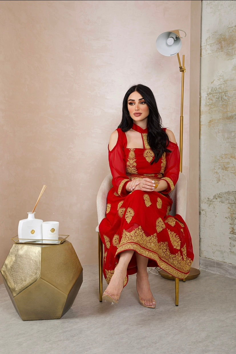 نفنوف خام شيفون هندي مبطن تطريز هندي يدوي