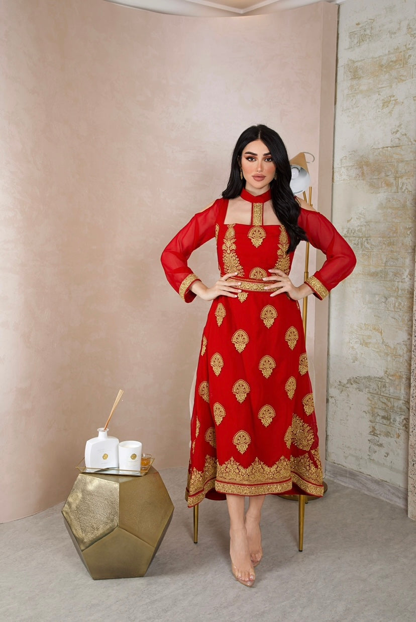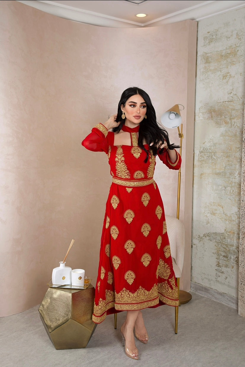 • Indian Chiffon dress with embroidery, square neck choker