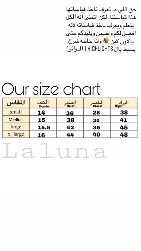 • اختيار القياس من الجدول او كتابة المقاسات بالملاحظه