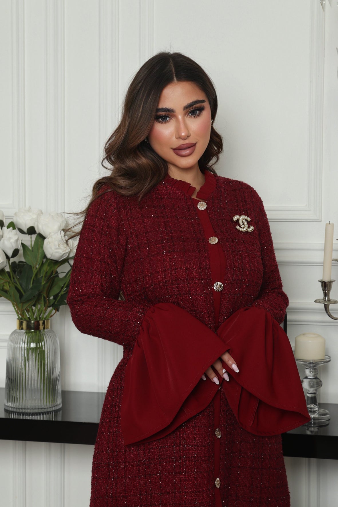 • جاكيت بستايل نفنوف عنابي بخام شانيل  وبزراير