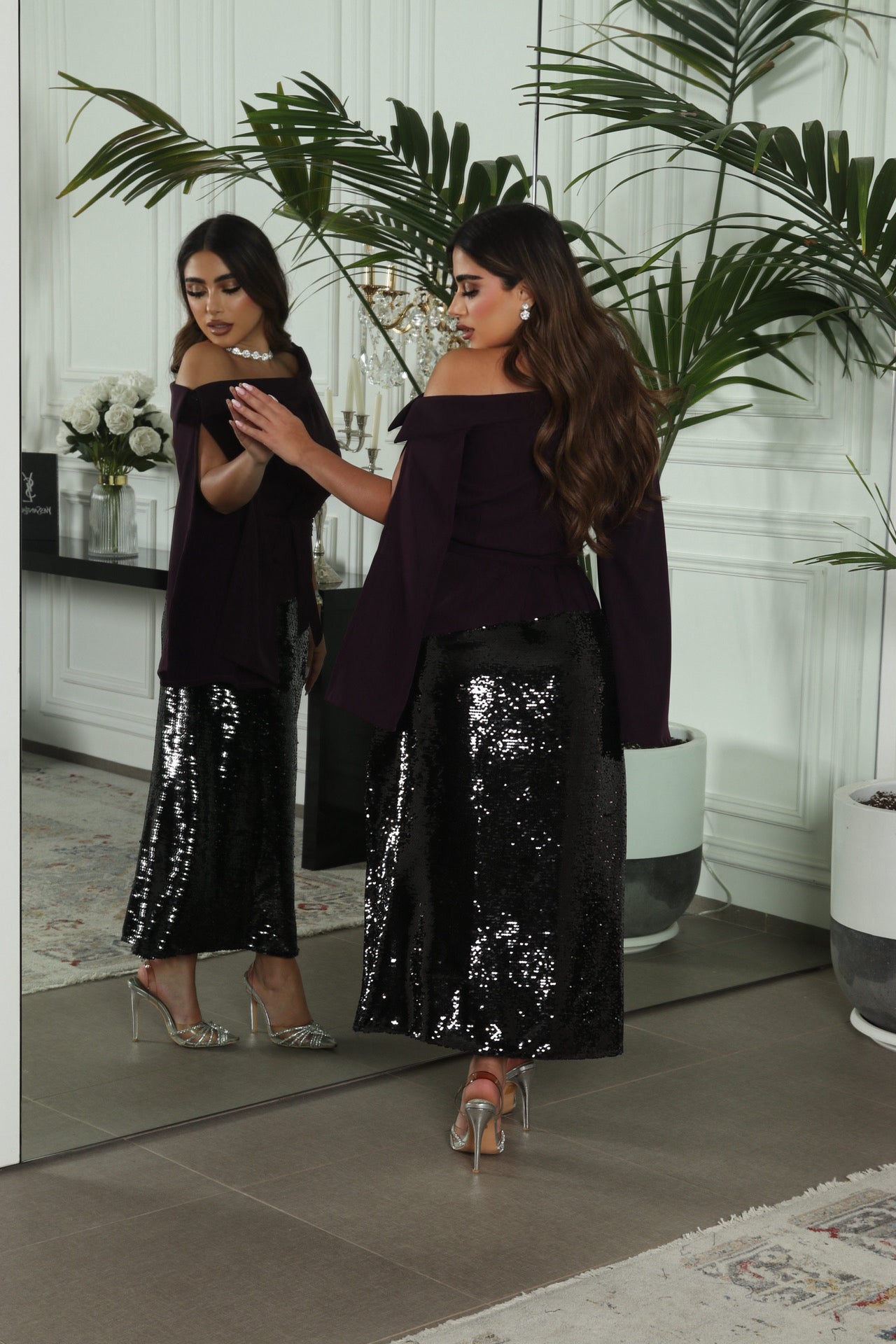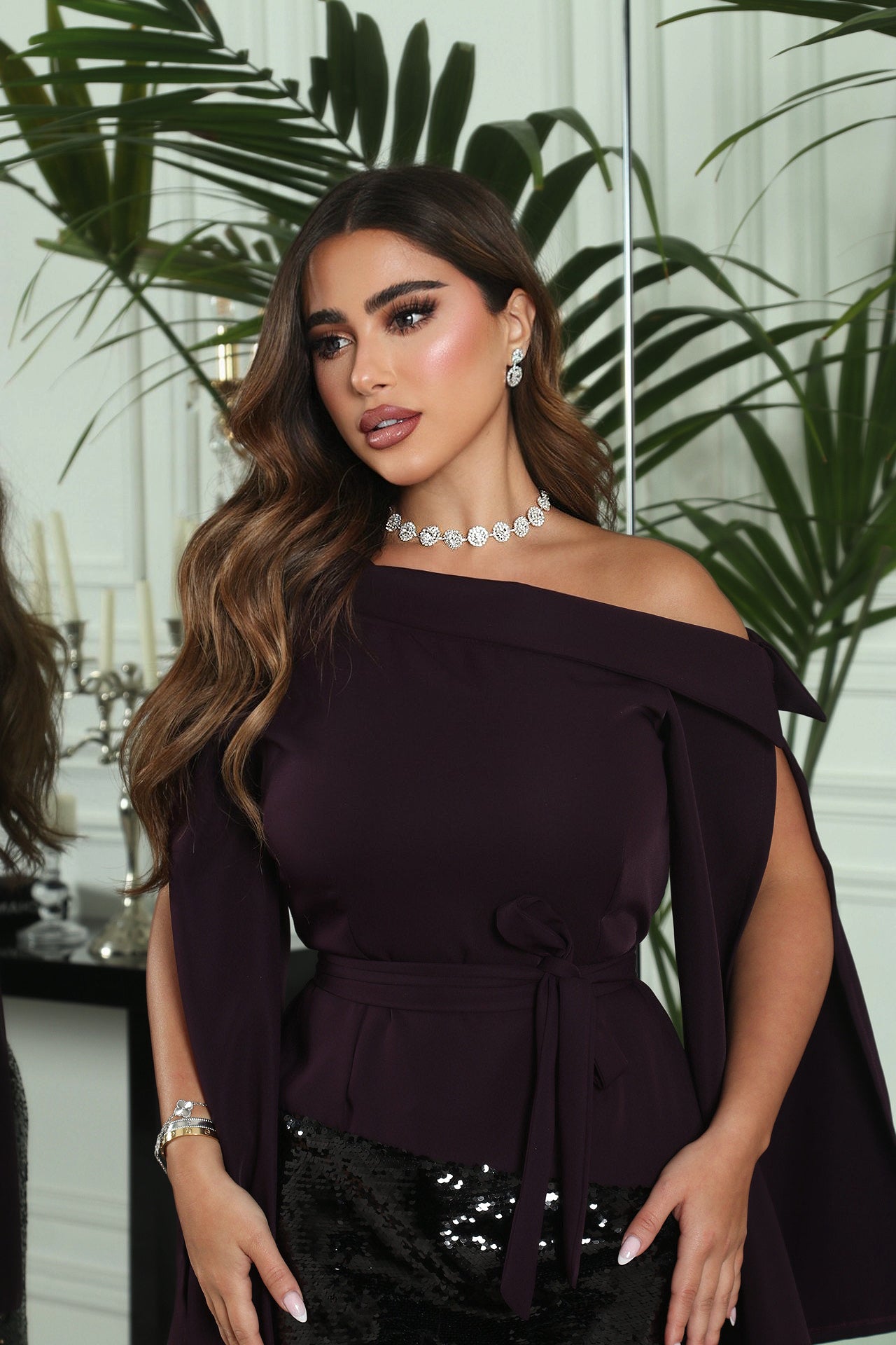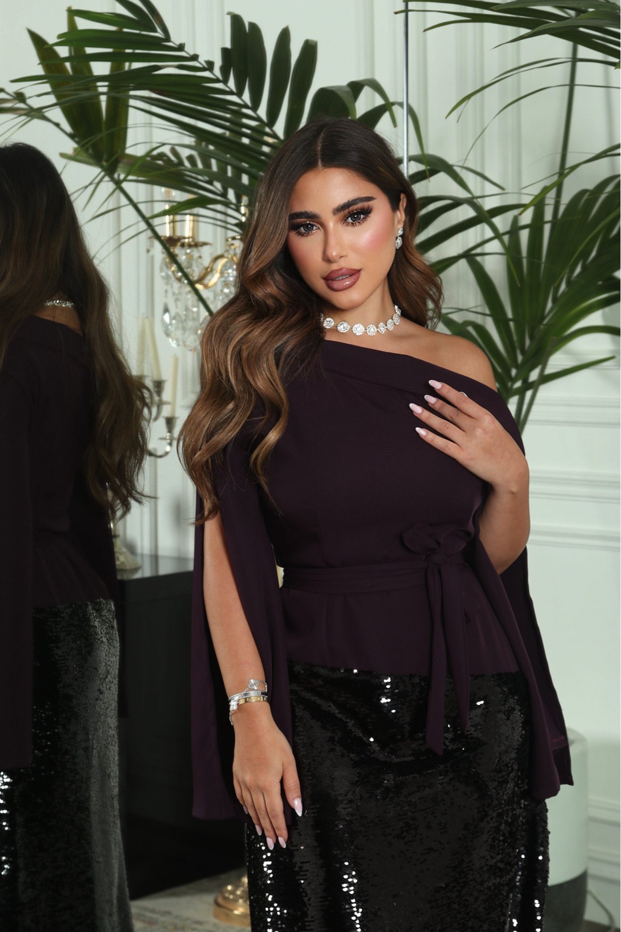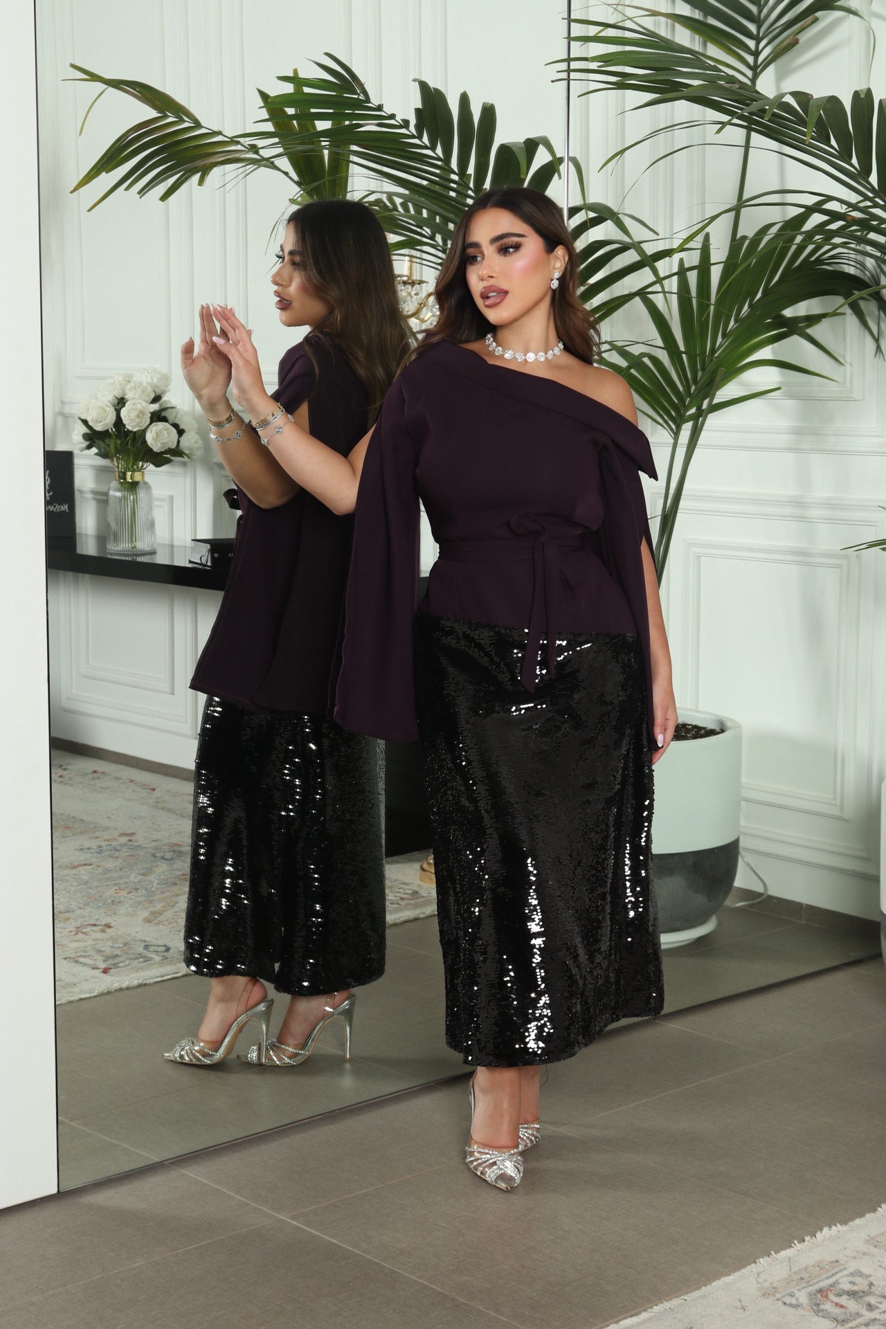 - نفنوف مع حزام باللون البنفسجي الغامج وترتر بقصه مميزه
