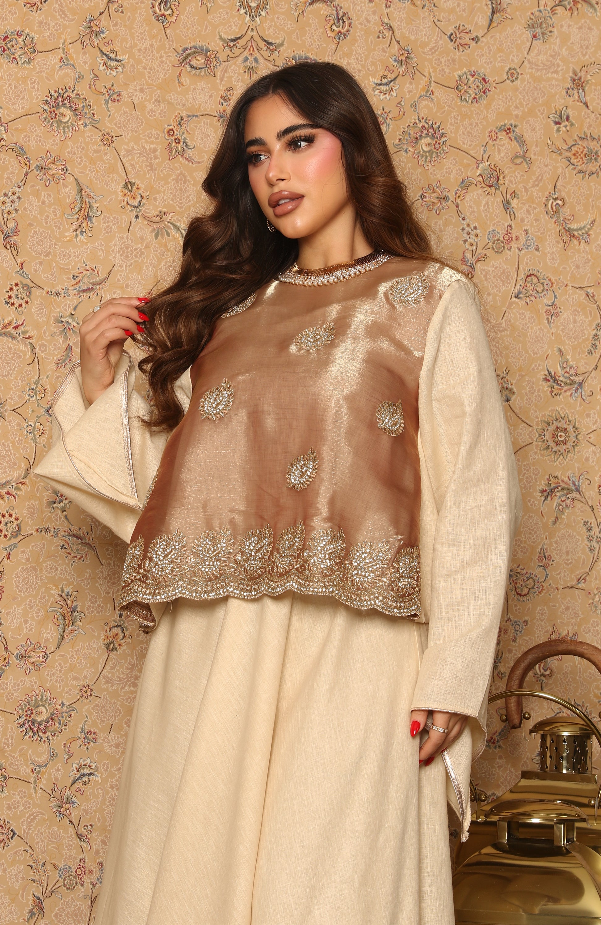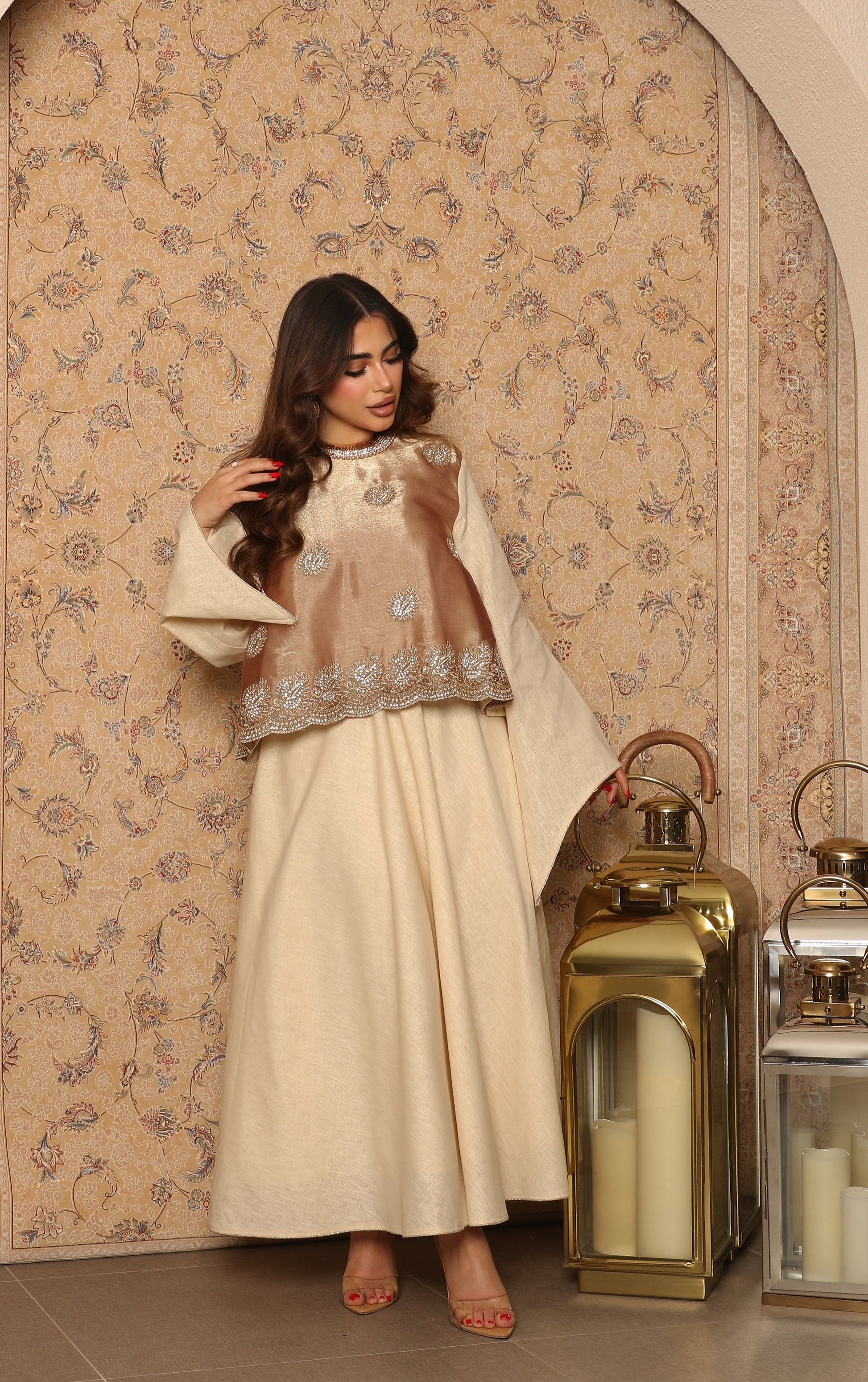 - تنوره وبلوزه بأكمام تتميز بتطريزها الهندي اليدوي يمكنكم طلبها بدون أكمام ( حفر) حسب الطلب
