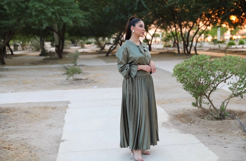بدله كامله توب غولته لف بسيط واكمام رفلز بسيط وتنوره بلسيه قصتها مميزه